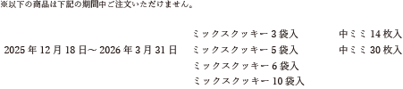 繁忙に伴い下記の期間停止する商品がございます。