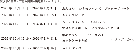 記載の商品以外にも予告なく停止する場合がございますので、予めご了承くださいませ。