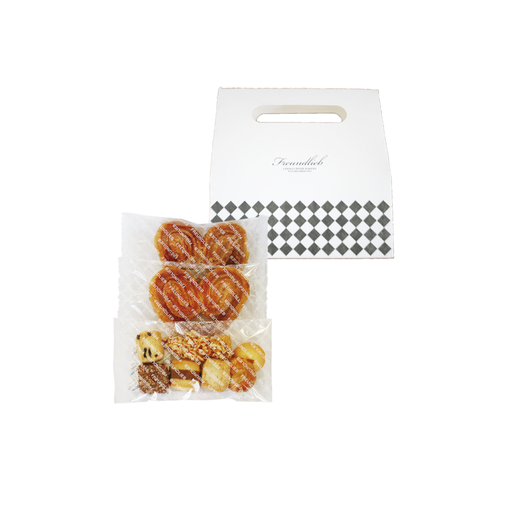 定番商品のミックスクッキーやパイを手に取りやすいサイズでご用意いたしました。